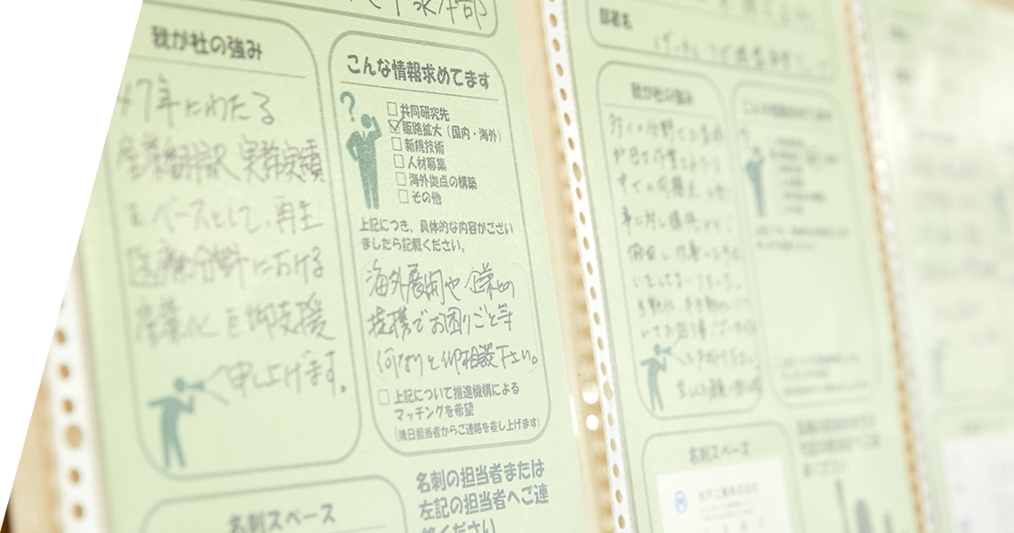 神戸医療産業都市では、情報交換、交流がきっかけで、企業連携にまで発展した事例が生まれています。今回のオープンイノベーションカフェでは、下記の3つの連携事例が紹介されました。